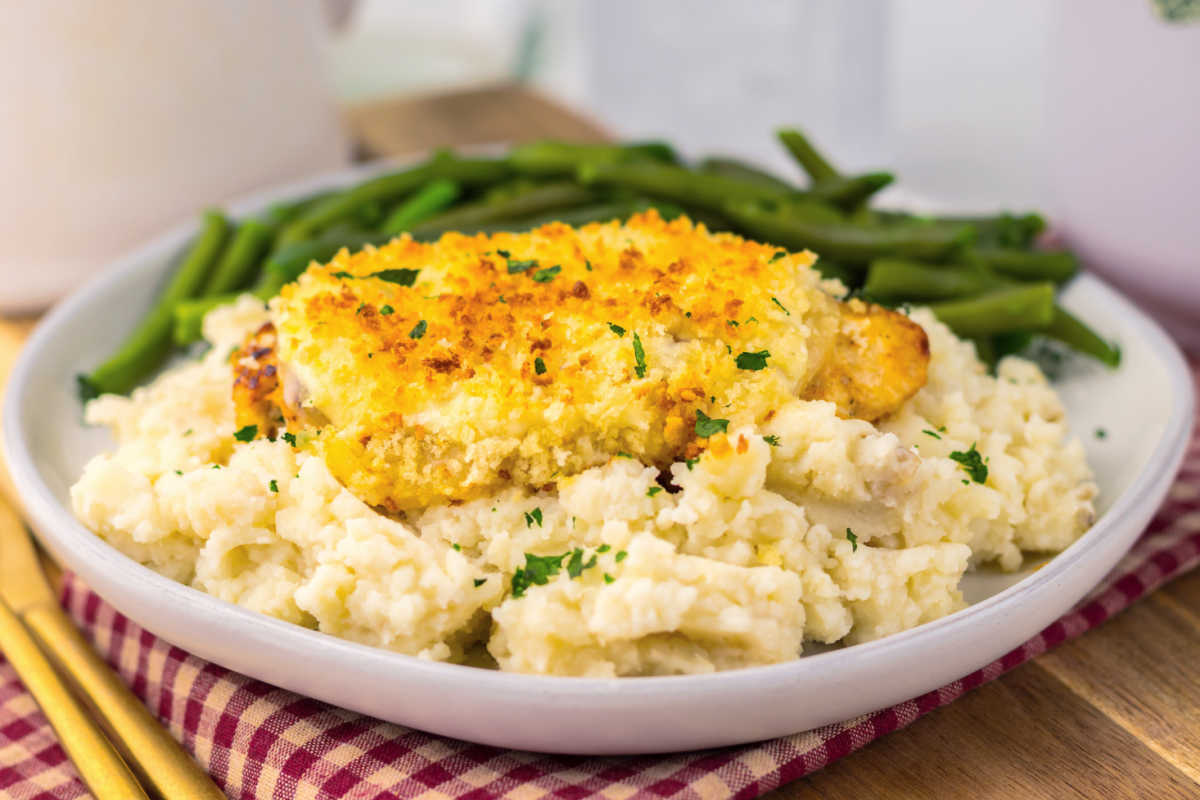 It is hard to be beat this baked parmesan ranch chicken recipe. The chicken is marinated in ranch dressing and seasonings. It is then baked until juicy and delicious. Top it all with cheese, more ranch and bread crumbs for a dinner that is sure to be a hit with the whole family.