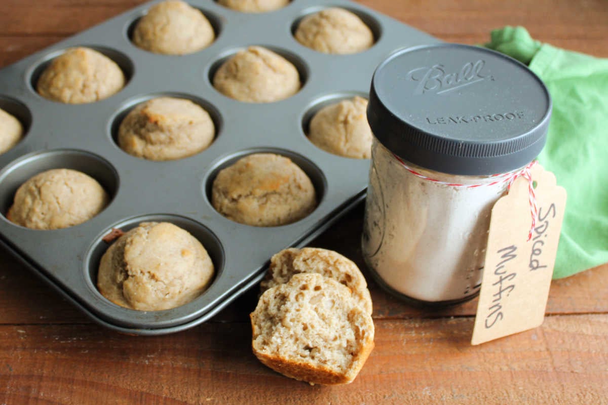 Making your own spiced muffin mix is as easy as can be. Make several at once then store some in your pantry for a quick breakfast option later. Or make them as fun homemade edible gifts.